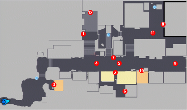 Head through the door in the room you start in and beat the enemies. There are quite a few items in this area (as indicated on the map above), so pick them up before heading through the door on the bottom right hand side of the room.