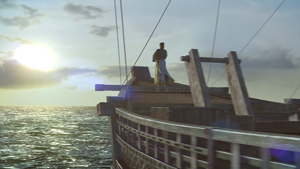 The screen then fades to black and the narration (done by Sakamoto Ryoma/Saito Hajime himself) explains that just a few years prior to Ryoma's assassination, the country had been ruled by the Tokugawa Shogunate for 300 years. But it all starting coming to an end when the black ships (the name given to ships arriving in Japan from western countries) showed up and the Shogunate did not have the means to fight such a powerful civilisation. He says the samurai aren't supposed to sit around quietly when a leader is weak, so this led to the country once again being in a state of civil war. After he finishes, the credits begin and we see Sakamoto Ryoma returning to Tosa on a boat.