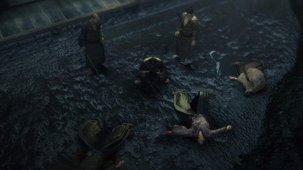 When you enter the Shinsengumi HQ, Ryoma meets up with Hijikata and other captains and sees the body of Inoue. Ryoma asks what happened, then Todo tells him he was shot twice, then finished off with a sword, then tossed into a river and that it was the doing of an Ishin-Shishi. Harada suggests that it was thanks to his age - he doesn't have the skill anymore, but Hijikata says Inoue's still had not declined - he was just taken by surprise and didn't even have a chance to offer any resistance. Harada is annoyed that the reputation of the Shinsengumi being the strongest force is being tarnished, with the deaths of several of their captains. Apparently they are being referred to as "Sacrificial Pawns" of the Shogunate by their enemies. Harada asks Hijikata to let him be the one to get revenge on the Ishin-Shishi, by going around slaughtering all he can find, to rebuild the reputation of the Shinsengumi being the strongest.