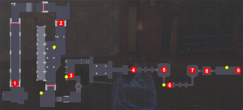 When you get here, you'll fight an armoured ninja as well as another group of regular ninja. Using acid bullets to destroy his armour will be helpful! After this fight, the ceiling will start coming down on Ryoma and Okita. Attack the RED square on the wall before time runs out to open up a passageway. After this, you split up with Okita and proceed alone.
