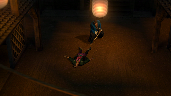 When Ryoma gets upstairs, it continues on from the opening cutscene, where he kills this other "Sakamoto Ryoma". Nakaoka tells Ryoma that it turns out the enemy saw through their plan and used their own trap against them! The Mimawarigumi have the place surrounded; Katsura and Saigo managed to escape, but Nakaoka didn't get so lucky. Then Ryoma turns and sees Takechi Hanpeita standing alongside Sasaki and Ito. Hanpeita says Ryoma must have a lot he wants to talk about - such as why he had Yoshida Toyo killed and why he'd been using the name "Sakamoto Ryoma". Ryoma, upset and angry with Takechi, has a speech about why things had to end up this way and how he hates him for this - hates him so much he wants to kill him - and then lunges at him with his sword, but Sasaki and Ito stop him. Takechi tells him he has one "final job" he needs Ryoma to do. He leaves, telling Ryoma he will be waiting for him at Tosa and that everything will be clear to him when he comes. After the 3 of them are gone, Hijikata, Nagakura and Okita enter the room. They see the body of (fake) "Sakamoto Ryoma" on the floor, but they see that it's not the same man as the one in the photograph they saw. Okita asks Ryoma what the hell happened in here. Ryoma, being as cryptic as he can, tells them the man called "Sakamoto Ryoma" is dead - he just died right here in this room.