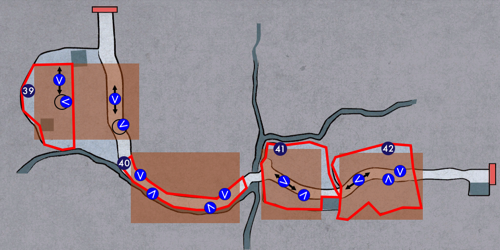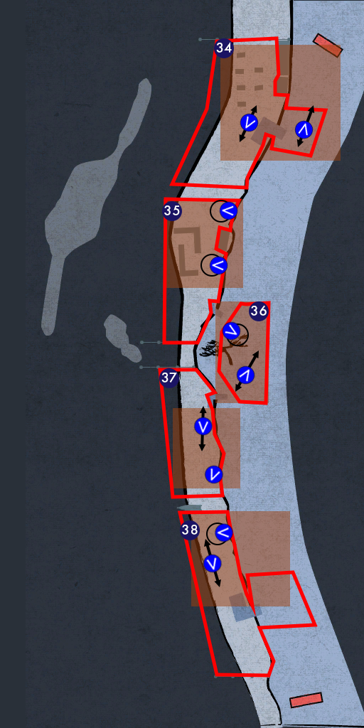 The numbers in the header of each battlefield section below refer to the numbers found on the maps section. The location after the number is the corresponding map where you find the battlefield. The location below the header is the name of the specific area on the map for the battlefield. Below that is the battlefield map. Under that is (if applicable) details concerning weapons you can pick up and special heat actions you can perform.
